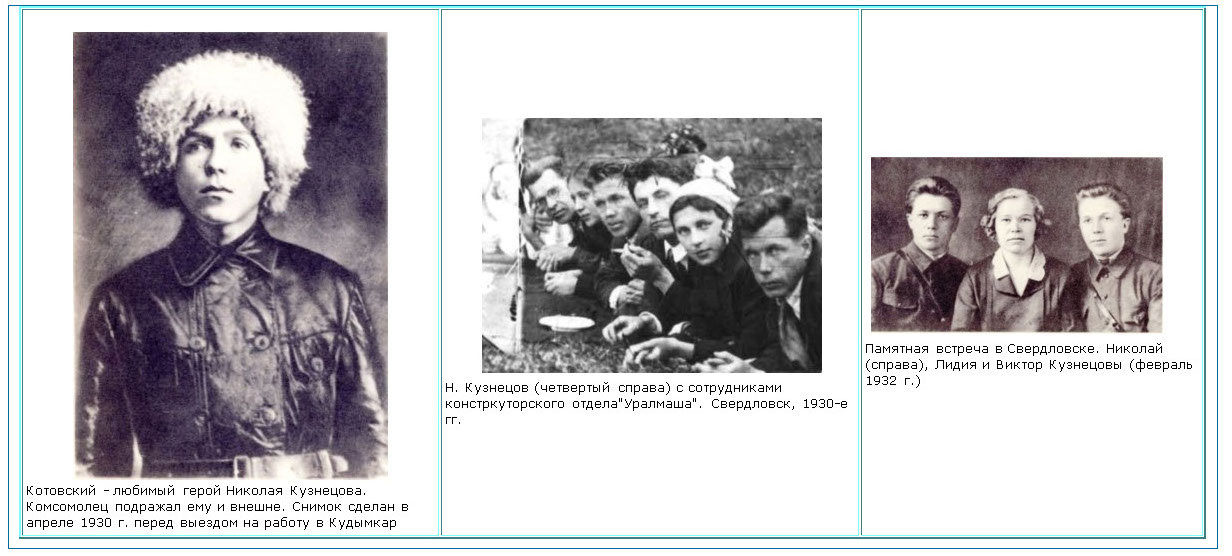 (1927-1932 года) — Памятник Н.И.Кузнецову — Памятник Н.И.Кузнецову, доставленный из города Львова в 1993 году — Краеведческий музей — Памятник Н.И.Кузнецову на железнодорожном вокзале — Памятник Н.И.Кузнецову у здания лесотехникума — Талицкий краеведческий музей
